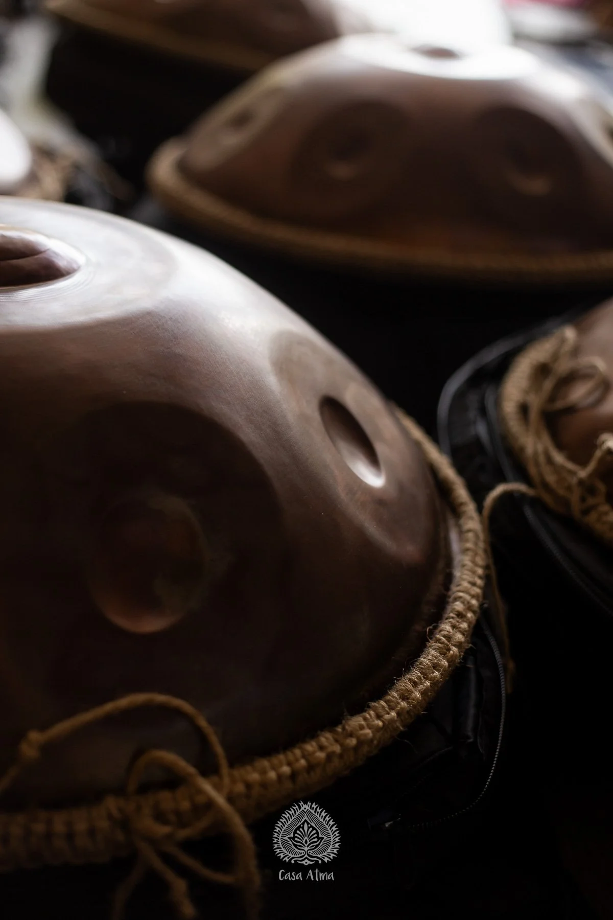 During the immersion, we reconnect with that memory and learn to express it through percussion, listening, playing, improvising — not just with any instrument, but the handpan: a unique sound sculpture where rhythm, melody, harmony and community merge into one.